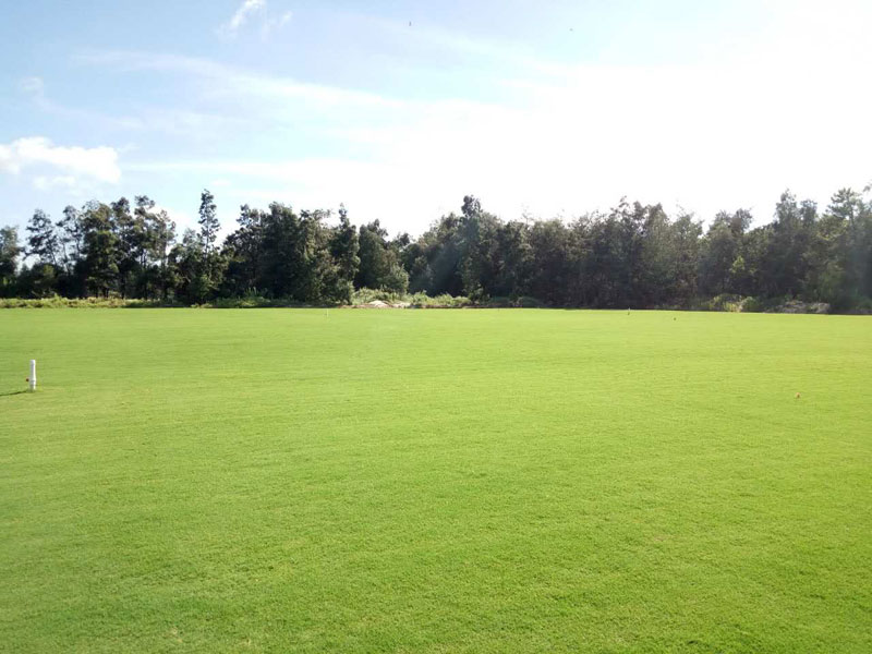 百慕大草是一種多年生草本植物,暖地型,匍匐莖。華東地區(qū)綠色期約為260-280天,秋季補(bǔ)播多年生黑麥草、粗莖早熟禾可使草坪四季常綠。Tifdwarf植株低矮,色澤濃綠,質(zhì)地細(xì)膩,均一性好,密度高。Tifdwarf耐高溫,耐低修剪,適宜修剪高度0.5-2.5cm左右。生長迅速,損傷后恢復(fù)快。病害較少,在返青期及梅雨季節(jié)前施用廣譜殺菌劑防治即可。是所有雜交狗牙根品種中耐鹽性最好的,在排水良好的地區(qū)矮生百慕大可容忍土壤中超出4000ppm總鹽,能夠滿足各個(gè)層次的養(yǎng)護(hù)水平,故此,百慕大草在很多的大型足球場(chǎng)和高爾夫場(chǎng)地上有廣泛的種植。